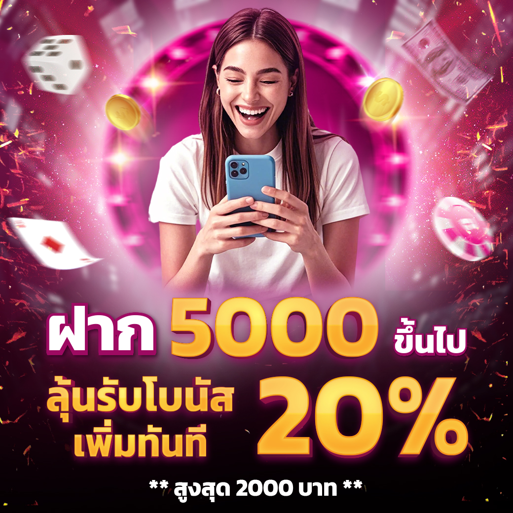 ฝาก 5000 ขึ้นไป ลุ้นโบนัส 20% โบนัสสูงสุด 2000 บาท